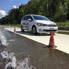 Hier sehen Sie Impressionen der Schleuderkurs-Fahranlage an der Schweizersbildstrasse in Schaffhausen und des Theorieraumes. Die Räumlichkeiten befinden sich gleich neben der Fahranlage bei der grossen Reithalle. Die Anlagen für die Durchführung der WAB-Kurse sind auf dem technisch höchsten Stand, die Moderatoren bestens geschult und die Kurse machen richtig Spass.